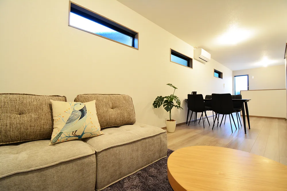 43条申請による2階建て新築戸建て|吹抜けで明るい室内を実現した高気密高断熱住宅